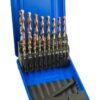 Ce coffret de 25 forets HSS comprend les forets de 1 à 13 mm par 0.5 mm (1.0, 1.5, 2.0, 2.5, etc.).