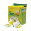 Elastomère jaune, 4 collerettes lisses, cordelette amovible en tissu bleu et jaune,