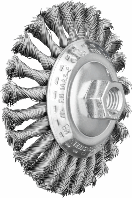 Brosse conique torsadée KBG Ø 115×15 mm M14, fil d’acier Ø 0,50 mm, meuleuse d’angle