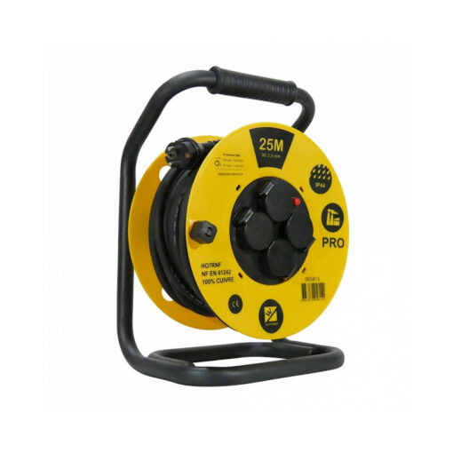 Enrouleur de câble avec 4 prises à clapet IP44. Norme EN 61.242 Classe de protection : IP44 Norme câble : HO7RNF Câble : 3G2,5 mm²