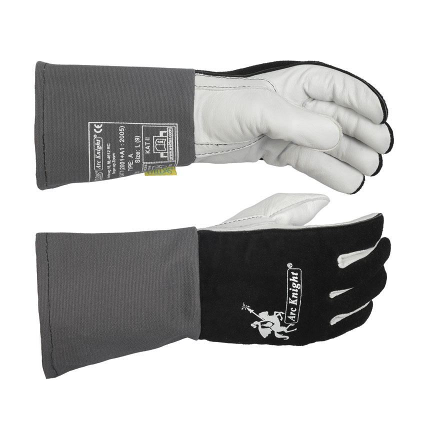Gant de soudage Arc Knight® pour un grand confort et toutes les applications de soudage. Cuir de vachette croûte noir et fleur blanc