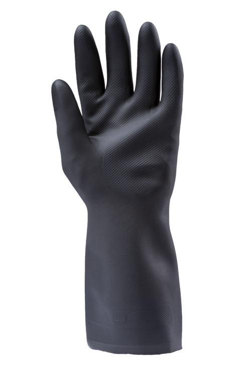 DESCRIPTION : Polychloroprène et latex, épaisseur : 0,7mm, Intérieur flocké coton, finition extérieure adhérisée diamant, Manchette longue, coupe droite, Longueur : 31cm
